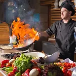 Az Alba à la carte restaurant éttermet kínál, ahol internationale specialitásokat szolgálnak fel. A Bistro Olymp egy 300 méteres távolságra található a hotel területétől.